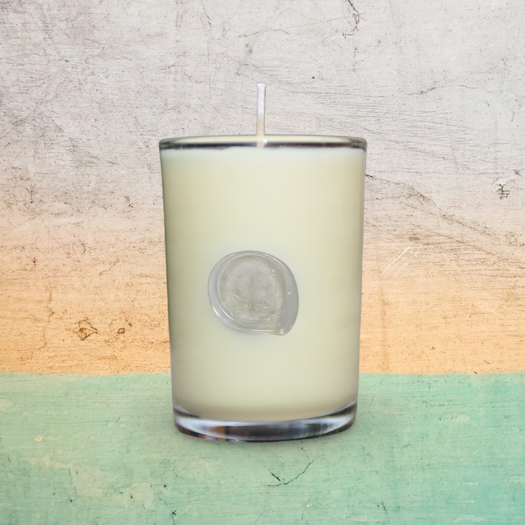 For our customers who prefer a scent-free candle-burning experience, here's Neutral Ground--still hand poured into our recycled 8.25 oz glass tumbler, hand stamped with a wax seal and placed in a colorful organza gift bag. 100% soy wax candle with 100% cotton wick. No preservatives, stabilizers, petroleum or alcohol. Burns about 50 hours, virtually soot-free and fragrance-free.